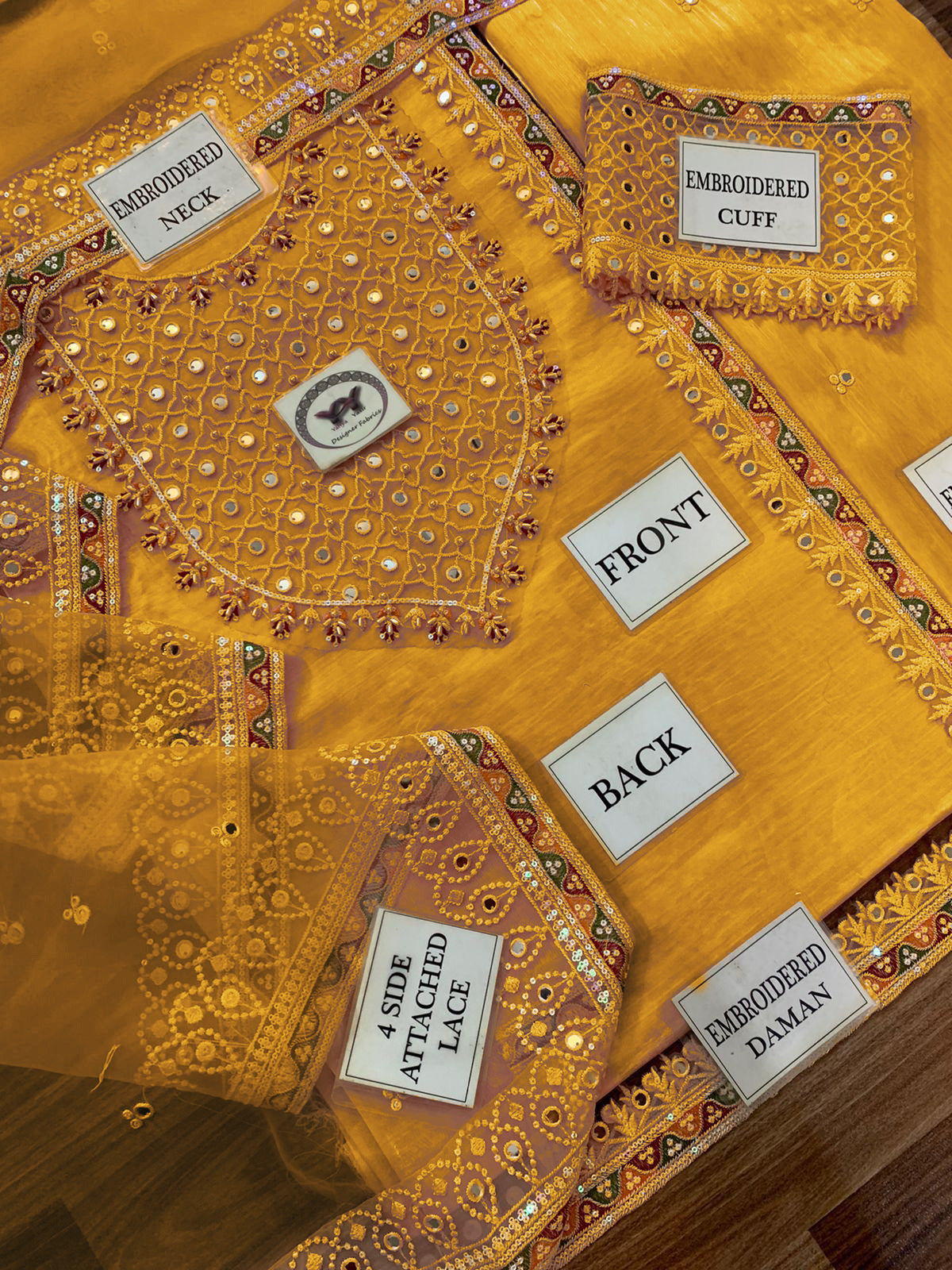 • Front, back, and daman lace featuring multi-thread embroidery with 9mm sequins